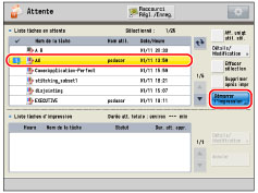 Si l'on appuie sur [Démarrer l'impression], l'écran Liste tâches d'impression s'affiche.