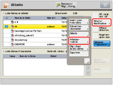 Lorsque plusieurs tâches sont sélectionnées et que l'on appuie sur [Détails], seules les informations concernant la tâche sélectionnée (en surbrillance) s'affichent.