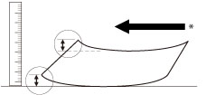 Placer le papier sur une surface plane. Placer une règle contre le bord avant en fonction du sens d'alimentation du papier, puis calculer le degré de courbure aux deux extrémités. Si la courbure est inversée, retourner le papier avant de mesurer.