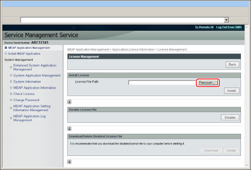 Il est possible d'ajouter, de désactiver ou de supprimer les fichiers de licence des applications installées.