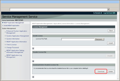 Une fois que l'on a supprimé le fichier de licence désactivé, il est impossible de le télécharger depuis la machine.