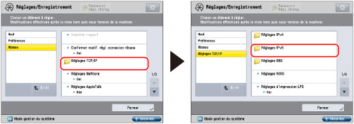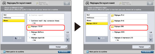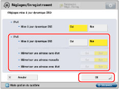 Si l'option <Utiliser DHCPv6> a été définie sur "Oui" à l'étape 7, le nom de domaine spécifié manuellement sera écrasé. Même si <Utiliser même nom d'hôte/nom de domaine que IPv4> est réglé sur "Oui", le nom de domaine obtenu du serveur DHCPv6 est utilisé.