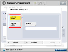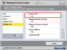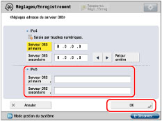 Si l'option <Utiliser DHCPv6> est réglée sur "Oui" à l'étape 7, l'adresse IPv6 d'un serveur DNS qui a été spécifiée manuellement sera remplacée.
