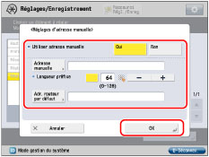 Si [Adresse manuelle] demeure vide, il est impossible d'utiliser une adresse manuelle. De plus, aucune des adresses suivantes ne peut être définie pour [Adresse manuelle] :