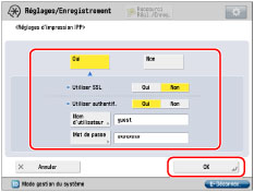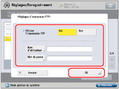 Régler [Oui] sur <Utiliser l'impression FTP> pour utiliser FTP en tant qu'application d'impression.