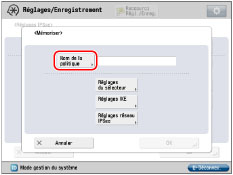 [Non] pour <PFS> : Si une clé de cryptage est exposée à un tiers alors que la fonction PFS est désactivée, les autres clés de cryptage risquent d'être découvertes. Si l'option <PFS> est réglée sur "Oui", cette option doit également être activée sur la destination de la communication PFS.