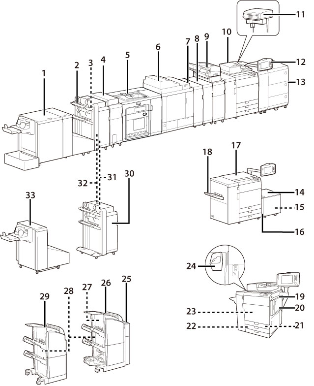 L'Module de perforation-BT1/Module de perforation-BU1 prend en charge le mode Perforation. La Module de perforation-BT1/Module de perforation-BU1 peut être installée uniquement si le Module de Finition-AM1 ou le Module de Finition P.A.C.-AM2 est installé.