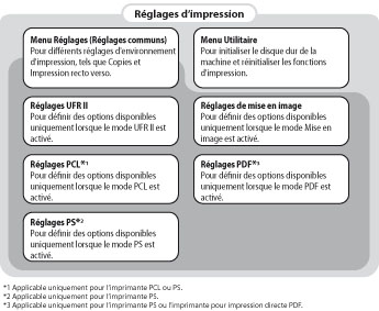 Menus des réglages UFR II/PCL/PS