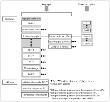 Certains réglages peuvent ne pas être disponibles selon le mode d'impression de l'imprimante.