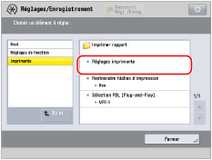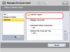 Les Réglages de rapport sont disponibles uniquement pour les imprimantes PCL ou PS.