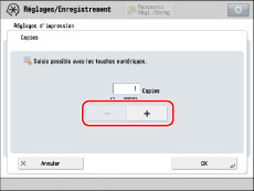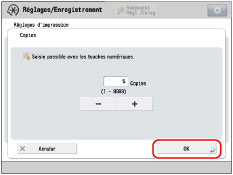 Appuyer sur [-] ou [+] pour saisir le nombre de copies.