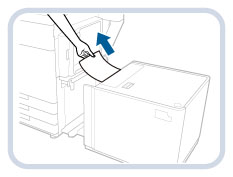 Lors de la réinstallation du Magasin grande capacité A3-B1 sur la machine, confirmer que la porte avant de la machine est fermée correctement.
