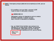 Si le mode Fonctions limitées est réglé sur "Oui" à partir de l'écran Message d'incident de fonctionnement, l'option [Mode Fonctions limitées] sous [Réglages de gestion] (Réglages/Enregistrement) est également réglée sur "Oui". (Voir "Fonctions limitées".)