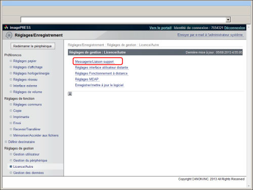 Pour afficher ou effacer la messagerie, il convient de se connecter en tant qu'administrateur.