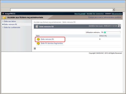 Cliquer sur [Accéder aux fichiers reçus/mémorisés] → [Boîte mémoire RX] → [Boîte mémoire RX].