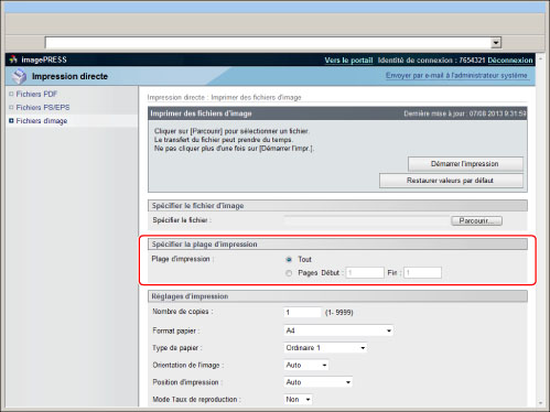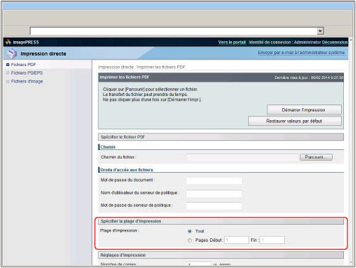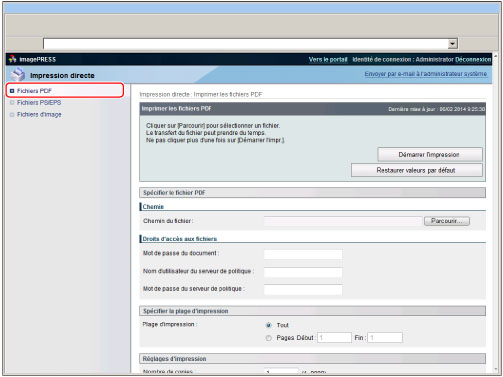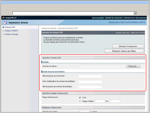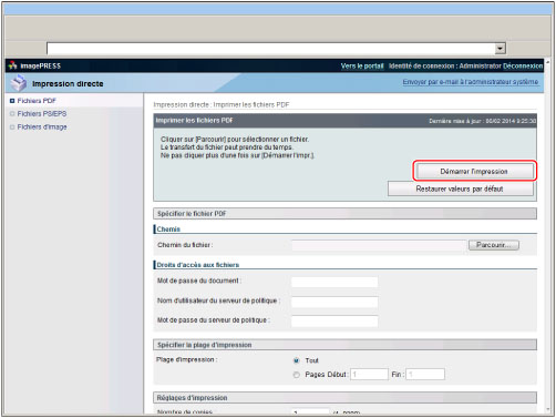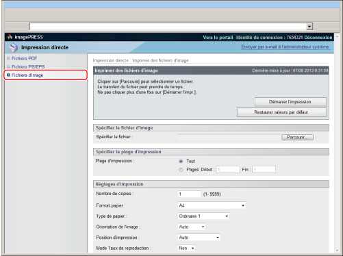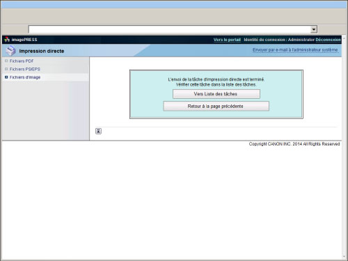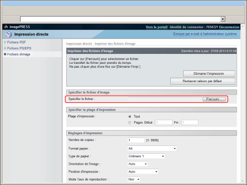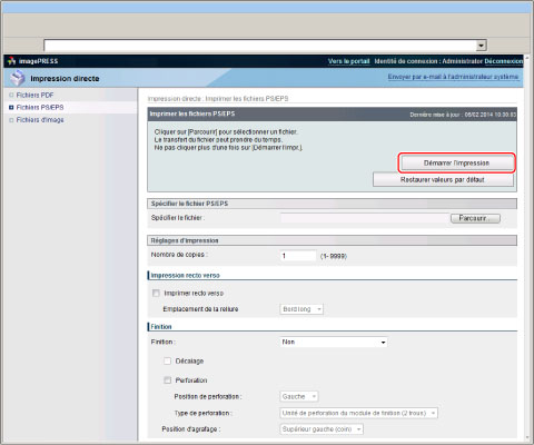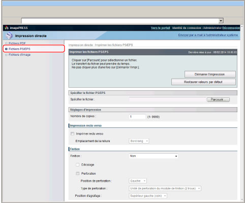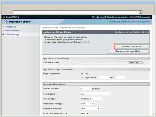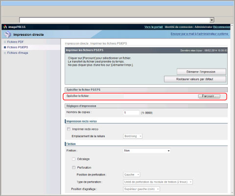 Pour imprimer directement des fichiers PS/EPS à partir de l'interface utilisateur distante, Kit de Connexion PS/PCL pour imagePRESS est nécessaire.