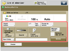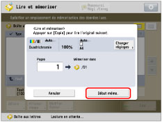Il est possible de mémoriser jusqu'à 999 pages. Si les originaux lus via le chargeur sont des originaux recto verso, il est possible de mémoriser jusqu'à 1 000 pages. Une fois le nombre maximum d'originaux atteint, un message s'affiche demandant si les autres pages doivent être mémorisées.