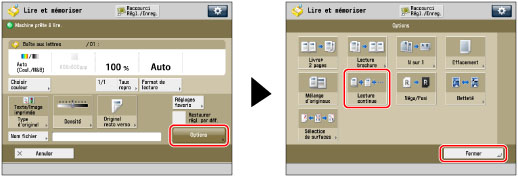 Si les originaux sont placés dans le chargeur, les retirer au fur et à mesure du réceptacle de sortie après la lecture de chaque lot.