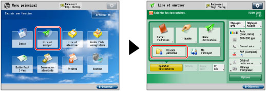 dans le coin supérieur droit de l'écran → [Mémoriser/modifier données pour chaque utilisateur] → [Dossier personnel].L'administrateur peut restreindre la destination de la transmission de fichiers à chaque dossier personnel de l'utilisateur général. (Voir "Restriction de la destination pour la transmission de fichiers".)