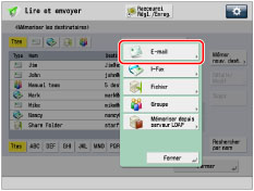 → [Lire et envoyer] → [Carnet d'adresses].