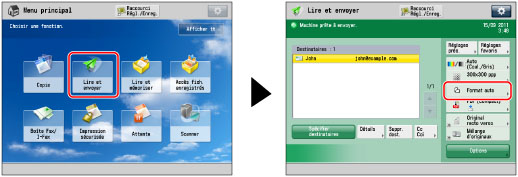 → [Lire et envoyer] → appuyer sur la touche de sélection du format de lecture.