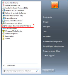 (Démarrer) sur un ordinateur → [Tous les programmes] → [Télécopie et numérisation Windows].
