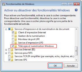 Si [Télécopie et numérisation Windows] ne s'affiche pas sous Windows 7, suivre les procédures ci-dessous.