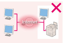 Si une adresse IP générale est attribuée à une imprimante/machine multifonctions, il est possible de créer un environnement réseau afin de réduire le risque d'accès non autorisé en installant un logiciel de sécurité, tel qu'un pare-feu afin d'éviter l'accès d'un réseau externe. Pour attribuer une adresse IP générale à une imprimante/machine multifonctions et l'utiliser, contacter l'administrateur réseau.