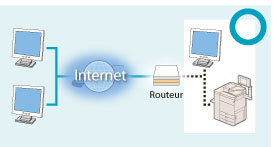 Un pare-feu est un système qui empêche l'accès de réseaux externes, ainsi que les attaques et les intrusions sur un réseau local. Il est possible d'utiliser un pare-feu sur l'environnement réseau afin de bloquer l'accès d'un réseau externe qui semble dangereux en limitant les communications en provenance d'adresses IP externes spécifiques. La fonction intégrée à une imprimante/machine multifonctions Canon permet de configurer un filtre d'adresses IP.