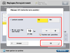 Appuyer sur [Réglages OCR (recherche texte possible)].