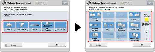 Appuyer sur [Réglages de fonction] → [Copie] → [Enregistrer raccourcis Options].