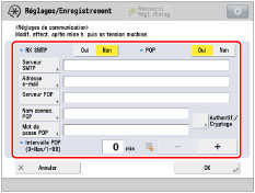 Pour envoyer des données cryptées, régler <Autoriser SSL (POP)> ou <Autoriser SSL (Envoi SMTP)> sur "Oui".