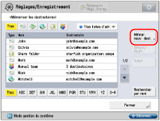 Si les documents ne sont pas envoyés par le biais d'un serveur et si l'adresse IP du destinataire n'est pas mémorisée avec un serveur DNS, entrer le nom de domaine selon ce format : (utilisateur)@(adresse IP du destinataire).