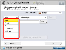 Les catégories de recherche Organisation/Unité organisationnelle peuvent uniquement être utilisées si l'information est répertoriée sur le serveur LDAP.