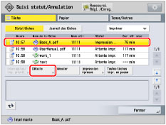 On peut vérifier les détails de tâche, tels que le nom de fichier et le nombre de pages.
