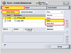 La destination d'une tâche annulée en raison d'erreurs de transmission ou d'une tâche en attente d'envoi avec le mode Envoi différé peut être modifiée.