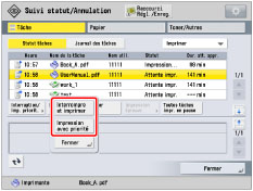 Interrompt la tâche en cours et imprime la tâche sélectionnée.