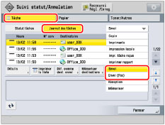 Affiche un écran dans lequel l'adresse de la tâche sélectionnée est saisie. Vérifier l'adresse → appuyer sur [OK] pour afficher l'écran Envoi.