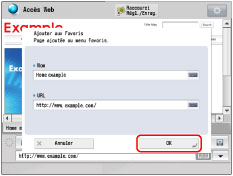 Modifier, le cas échéant, le nom de la page Web à ajouter en appuyant sur le champ de texte <Nom> → saisir le nom → appuyer sur [OK].