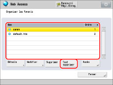Pour trier la liste des Favoris dans l'ordre croissant ou décroissant, appuyer sur [Nom] ou [Ordre].