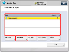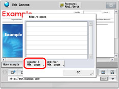 Le nom et l'URL peuvent être modifiés. Si l'URL est modifiée, le contenu de l'écran enregistré ne change pas. L'écran affiché actuellement est enregistré sous forme de mémoire pages.
