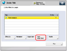 Sélectionner [Nom] ou [Ordre] pour trier la liste de mémoires pages dans l'ordre croissant ou décroissant.