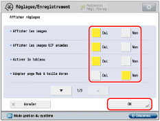Si [Intervalle vue animation Flash] est défini sur "Court", d'autres opérations, telles que l'impression, risquent de ralentir.