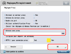 Pour plus d'informations sur la modification des réglages proxy de la machine, voir "Réglages communs à TCP/IPv4 et TCP/IPv6".