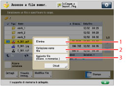 Premere per aggiungere un file, eliminare il file selezionato o modificare un nome di file.