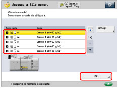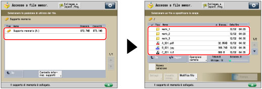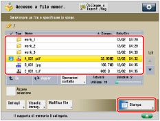 Se nel supporto memoria sono registrati due file o più, è possibile premere [Nome] o [Data/Ora] per ordinare l'elenco dei file.