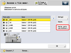 È possibile registrare tipi di carta che non sono indicati nell'elenco delle impostazioni dettagliate in <<Variazione carta vassoio multiuso: Tipo di carta>>. Per maggiori informazioni sulla registrazione del tipo di carta, vedere "Registrazione dei tipi di carta personalizzati".