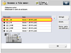 Se si preme [Dettagli] vengono visualizzate informazioni dettagliate sulla carta selezionata.