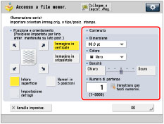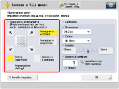 Il modo Numerazione serie non può essere utilizzato con i file che contengono immagini con una risoluzione inferiore a 600 x 600 dpi.