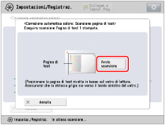 Accertarsi di posizionare correttamente le pagine di test. Non è possibile eseguire una ricalibrazione precisa delle impostazioni di colore della macchina se le pagine di test non vengono acquisite correttamente.